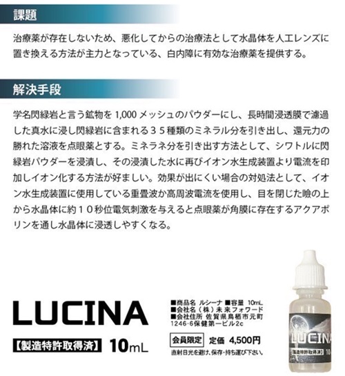 LUCINAは、目の水分を保ちながら目の周辺に集まる老廃物を身体から排出し、目の水分量を一定に保つ働きをします。