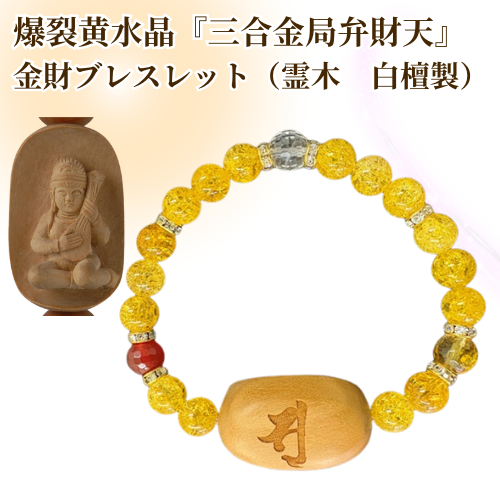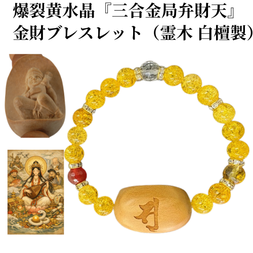 ![]() ![]() 爆裂黄水晶『三合金局弁財天』 金財ブレスレット(霊木 白檀製) ![]() ![]() 金脈の流れを最高に高める風水最強の 財運方位「三合金局」 風水学における三合金局は 金脈の流れを高める吉方位です ![]() 「三合金局」とは、陰陽五行説に基づく占術や風水において、特定の十二支(巳・酉・丑)が揃うことで「金」の気が非常に強まる吉兆とされる現象です。 2025年はこの「三合金局」の年にあたり、金運や財運が非常に高まる「豊かな財をなす絶好の一年」とされていました。 2026年に、その財運を持ち越すために このブレスレットは誕生しました。 2026年1月から、この財運を持ち越し、2026年の正月から ![]() きってください。 この製品は、旧正月である2026年2月17日(火曜日)まで 個数限定で販売させていただきます。 ![]() 弁天様は、元はインドのサラスバティという土地に豊穣をもたらす河の神様のことで、美しい河の流れの音から発展し、音楽や学問の神としても信仰されました。 ![]() それが日本に渡り、古くは「弁才天」と表記されましたが、次第に「弁財天」と書かれるようになり、金運や財産の女神として信仰されるようになりました。 ![]() (霊木 白檀製) ![]() 中でも、鎌倉にある裸弁財天(妙音弁財天半跏像)は金運・財運ご利益が有るとしてよく知られています。 本ブレスレットはその裸弁財天をモチーフに貴重な香木である白檀で製作され、そのご利益の源である女性器までも再現されています。 ![]() 弁財天のご真言は「オン ソラソバテイエイ ソワカ」で、ブレスレットをして心でこのご真言を念じれば、金運・財運のご利益がもたらされるでしょう。 ![]() 白檀は、そのほのかな香りの良さで昔から珍重され、ある意味アロマテラピーの元祖とも言える香木です。 また、仏教との結びつきも古く、線香の原料の香料として、防虫効果の高さから仏像や数珠の材料にも用いられ、第一級の霊木とされてきました。 ![]() また、中国では白檀が発芽の頃から香気を放つことから、大成する人は幼少の頃より優れているという例えにされ、持つものの運気を開かせる木とされています。 ![]() ![]() ![]() 「爆裂黄水晶(ばくれつすいしょう)」 水晶に人工的に無数のヒビ(クラック)を入れ、さらに黄色に染色加工を施したパワーストーンです。 内部のヒビが光に当たると虹色に輝き、魔除けや厄除け、金運アップの効果があるとされ、特に商売繁盛やストレス緩和、判断力向上を願う人に人気があります ![]() ![]() ![]() ●金財運と運気を開かせる 『裸弁財天』金財ブレスレット 一級霊木の白檀に刻まれた裸弁財天は身に付ける貴方に大いなる金財運を授けてくれ、あなたの将来を輝かしいものにしてくれることでしょう。 白檀が放つ香しい香気、持ち主の貴方だけが目の当たりに出来る弁天様のパワーの源である秘部、全ては手にした貴方だけが享受できる大いなる喜びでもあります。 是非、今過ぐ申込みになりその大いなる力を体感なさって下さい。 裏面 ![]() 弁財天の表側は、梵字が描かれています。 ![]() ![]() 下記の写真は試作品なので 三合金局に使われている石が違います。 ![]() 使い方 弁財天の付いている手の肌につくように付けてください。 梵字があなたの邪気を払い弁財天様があなたを守ってくださいます。 仕様 爆裂黄水晶 三合金局(3玉) 水晶 黄水晶 赤めのう サイズ Mサイズ 手首廻り 約〜 17 cm Lサイズ 手首廻り 約〜18.5 cm 重量 約10 g 弁財天プレート 3×1.9×1.3cm |