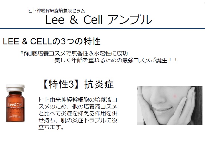 ![]() 新型 従来の6本分 30ml 「肌をデザインする、サイエンスの象徴」 Lee & Cellは、肌本来の力を生かす幹細胞科学をもとに誕生したブランドです。 デビューアイテムは、ヒト由来の幹細胞培養液と ペプチド複合体をベースにした、肌の再生と回復を目指す秀逸なアンプル。 その素晴らしい力を応用した『クリスタルプレミアボディセラム』は、 顔だけでなく全身の肌のキメやハリ、ツヤを磨くボディ用 アンチエイジングソリューションとして早くも定着しました。 『Lee & Cellアンフシしシリーズ』をご愛用の方々からは、 この肌の奥深くの細胞レベルともいえるような手応えに 多大な信頼感とご期待をいただいてします。 そしてついに、Lee & Cellの幹細胞培養技術・ペプチド・成長因子を融合させた 革新的なソリューション『クリスタルプレミアセラム』が誕生することとなりました。 ![]() この製品にはさらに肌への吸収率と浸透力を格段に高める MSASystem が搭載され、各成分がもつ本来の パワーをそのまま肌に届けることができます。 皮膚科学の進化はLee & Cellと共に。 ![]() 皆様の美しい未来のため、 今後も研究を続けてまいります。 神経幹細胞培養液 (NSC‐CM) 神経幹細胞培養液は、神経細胞の成長と回復を 促進する様々な成長凶‐了‐やタンパク質などを含む 次世代バイオ原料です。 安全性が高く高純度なこの原料は、他とは‐−線を画す アンチエイジングソリューションの核となる存在です。 ペプチド& 成長因子 ペプチドと成長凶子、どちらも細胞の活性化を)促し.て 肌がみずから美しくなろうとする力を強化し.ます。 肌の弾力やシワ、ツヤなどを整える重力なサポーター として高濃縮配合しています。 MSASystem(革新的な乳化技術) MSASystemは配合成分がもともともつ力を維持し たまま、化学的な乳化剤を使わず均一に混ぜ合わせ る画期的な技術です。 他にはないこの乳化法のおかげで成うの吸収率と 浸透力が飛躍的に高まるため、即効性のある肌変化を もたらします。 ![]() 肌の再生とエイジングケア: 線維芽細胞に働きかけ、コラーゲン、エラスチン、ヒアルロン酸の産生を促進します。 これにより、肌にハリと弾力を与え、シワやたるみの改善が期待されます。 美白効果: メラニンの生成を抑制する働きがあり、シミやくすみの改善に繋がるとされています。 ターンオーバーの促進: 肌の新陳代謝を促し、健やかな肌状態へ導きます。 組織・神経修復作用: 損傷した神経細胞の修復や再生をサポートする効果が研究で示唆されています。 アルツハイマー病や脊髄損傷など、神経系疾患への応用が期待されています。 抗炎症作用: 炎症を抑える働きがあり、関節痛などの改善に役立つ可能性があります。 発毛・育毛効果: 毛母細胞を活性化させ、頭皮環境を整えることで、発毛や育毛を促進する効果が期待されています ■LEE & CELL神経幹細胞培養液セラム 贅肉を落とす 増毛 シワ改善 痛みの改善 リウマチの改善 肌再生 28成分 シワ改善 9成分 アトピーなど肌荒れ成分 11成分 美白成分 2成分 ![]() リーセル クリスタルプレミアム ジェル 200g ![]() ![]() ![]() ![]() ![]() ![]() ![]() 贅肉を落とす 増毛 シワ改善 痛みの改善 リウマチの改善 肌再生 28成分 シワ改善 9成分 アトピーなど肌荒れ成分 11成分 美白成分 2成分 ![]() ![]() ![]() ![]() ![]() ![]() ![]() ![]() ![]() ![]() ![]() ![]() ![]() ![]() ![]() ![]() ![]() ![]() ![]() ![]() ![]() ![]() ![]() ![]() 高品質の神経幹細胞配合のボディジェルです。 さっぱりしたクーリング感で、べたつかずに素早く馴染みながら、メントールによるひんやりした冷感があり、お肌も引き締めます。 6つの植物エキス(ラベンダー花エキス、ローズマリー葉エキス、カミツレ花エキス、タイマツバナ葉エキス、セイヨウハッカ葉エキス、フリージアエキス)で外敵刺激から疲れたお肌を癒し、ダマスクバラカルス培養エキスやカフェオイル合成ヒトオクタペプチド4の保湿成分が肌深くまでうるおいを与えます。 ご使用方法 ジェルを適量とり、清潔なお肌にご使用ください。 身体の気になるところに軽くマッサージしながら馴染ませてください。 お顔以外、ヘッドにもお使いいただけます。 ![]() ■LEE & CELL神経幹細胞培養液セラム リーセル クリスタルプレミアム ジェル200g 高品質の神経幹細胞配合のボディジェルです。 さっぱりしたクーリング感で、べたつかずに素早く馴染みながら、メントールによるひんやりした冷感があり、お肌も引き締めます。 6つの植物エキス(ラベンダー花エキス、ローズマリー葉エキス、カミツレ花エキス、タイマツバナ葉エキス、セイヨウハッカ葉エキス、フリージアエキス)で外敵刺激から疲れたお肌を癒し、ダマスクバラカルス培養エキスやカフェオイル合成ヒトオクタペプチド4の保湿成分が肌深くまでうるおいを与えます。 ■LEE & CELL神経幹細胞培養液セラム Lee & Cell Ampoule(5ml) 5本セット 希望小売価格55,000円(税込み) 15本セット 希望小売価格165,000円(税込み) 30本セット 希望小売価格330,000円(税込み) 