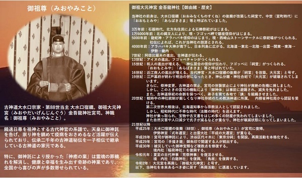 ![]() ![]() ![]() ![]() あなたと大元尊神との縁を結び、あらゆる運気好転 をもたらす古神道秘伝の首飾り! 神璽首飾り『結璽』(しんじくびかざり『むすびのしるし』)は、 あなたと根源神である大元尊神との縁を結ぶ首飾り型 の御守りです。 首飾りの内部には金吾龍神社(正式名:御祖大元神宮 金吾龍神社) の御祖尊(みおやみこと)宮司が古神道の秘伝 「神人合一(しんじんごういつ)の儀」により、大元尊神の御神魂 を入霊した霊符を揮毫した木札が収められています。 ![]() ![]() むすびとは むすびとは 「結ぶ」という言葉には、紐など細長いものをくくる、 という意味の他に、「ご縁を結ぶ」「契りを結ぶ」のよ うに二つの間をつなぐという意味や、「努力が実を結 ぶ」のように、物事が形にあらわれる、という意味があ ります。 この「結び」という⾔葉が初めて登場するのは、日本 神話に出てくる「産霊」(むすひ・むすび)といわれ、 「むすひ」とは日本古来の信仰の根幹です。 「産霊(む すひ)」の、「産=むす」とは、ものを生み出し、造り成す意味で、「霊=ひ」は、霊または神秘的なはたらき を意味します。 つまり、「産霊(むすひ)」とは、天地 万物(この世のすべてのもの)を生成し、発展させる 神 霊の力ということです。 あらゆる霊を生みだしたのが、原初の存在である根源神「大元尊神(だいげんそんしん)」です。 ![]() 大元尊神は、 すべての霊や神々、天地万物の創造神です。 人間は神様 の分け御霊というのは、「霊=ひ」が止まるものが「霊 止=ひと(人)」だからです。 男女の「むすび」は、霊 魂と霊魂の結合、つまり「結魂」であり、生命・霊魂の 繁殖に よって生まれた子供を「むすこ・・むすめ」と呼ぶ のです 幸せと不幸せの境目 人間は本来、神様から清らかな霊魂を分 け与えられ、健康で豊かで愛と喜びに満ち た存在として生まれさせられています。 と ころが、知らず知らずのうちに犯した罪や 穢れにより、霊魂に曇りが生じてくると、 神様 との「おつながり(むすびつき)」が弱まり、病気や貧苦、争いや災難が生じて きます。 すなわち、人間の幸・不幸は、不幸は、霊 魂の状態によって決まってくるのです。 ![]() ![]() ![]() ![]() 人間は本来、神様から清らかな霊魂を分け与えられ、健康で豊かで愛と喜びに満ちた存在として生まれさせられています。 ところが、知らず知らずのうちに犯した罪や穢れにより、霊魂に曇りが生じてくると、神様 との「おつながり(むすびつき)」が弱まり、病気や貧苦、争いや災難が生じてきます。 すなわち、人間の幸・不幸は、不幸は、霊魂の状態によって決まってくるのです。 ![]() あなたと大元尊神との縁を結び、あらゆる運気好転をもたらす古神道秘伝の首飾り! 神璽首飾り『結璽』(しんじくびかざり『むすびのしるし』)は、あなたと根源神である大元尊神との縁を結ぶ首飾り型の御守りです。 首飾りの内部には金吾龍神社(正式名:御祖大元神宮 金吾龍神社)の御祖尊(みおやみこと)宮司が古神道の秘伝「神人合一(しんじんごういつ)の儀」により、大元尊神の御神魂を入霊した霊符を揮毫した木札が収められています。 ![]() ![]() 『結璽』を首から下げた瞬間、あなたの霊魂は大元尊神と特別な御神縁で固く「むすばれ」、金運、健康、厄除、愛情、学業、勝負運など、あらゆる運気が好転へと向かいます。 神璽首飾り『結璽』のヘッド部分の素材は銀925(スターリングシルバー)。 銀は古来より破邪の力を宿し強い浄化作用を持つとされる特別な金属です。 更に活力の波動を持ち金運など様々な運気を⾼めるとされる黄金仕上げを施しました。 このように『結璽』は、「神人合一の儀」を施すに相応しい最適な素材を持った護符であることがご理解頂けるものと思います。 ![]() 『結璽』を下げる紐は肌あたりも優しく、健康長寿の力を宿すとされる絹紐(茶色と金色の2本)が付属、御祈祷証明書と共に桐箱に収めてお届けいたします。古神道の秘伝で生み出された神璽首飾り『結璽』。 ![]() 是非、お求めになり大元尊神の大いなる加護を体感なさってください。 ![]() ![]() ![]() ![]() 神璽首飾り『結璽』(しんじくびかざり『むすびのしるし』) ●寸法(約):本体/縦3.2×横2.5×厚さ0.6cm、紐/50㎝+アジャスタ 5㎝ ●重量:本体/20g、紐/4g ●材質:本体/銀925(金鍍金仕上げ)、 霊符/桧、紐/シルク、亜鉛合金(金鍍金仕上げ) ●製品内容:本体、 シルク紐2本(茶・金)、霊符、祈祷証明書、桐箱収納 個装寸法(約):7×27×20㎝、重量270g 販売価格:36,000円(税込39,600円) |