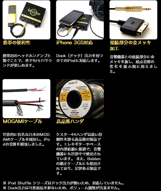 ※ iPod Shuffle シリーズはドック出力が無いため、対応していません。