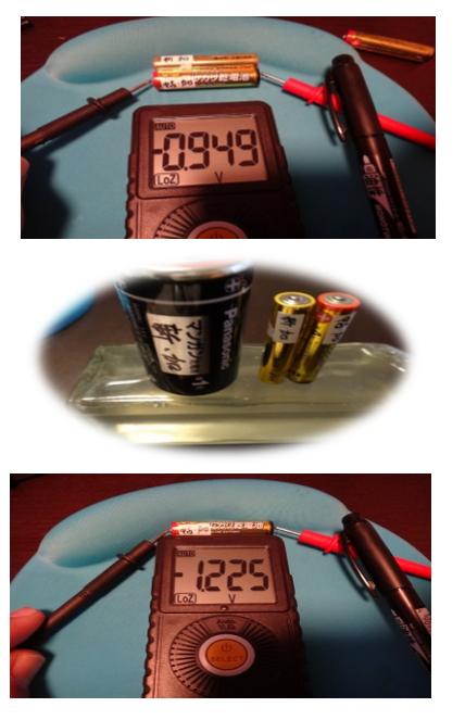 22世紀の美入浴液開発者S氏は、その事象を証明するために使い古された乾電池を使いました。