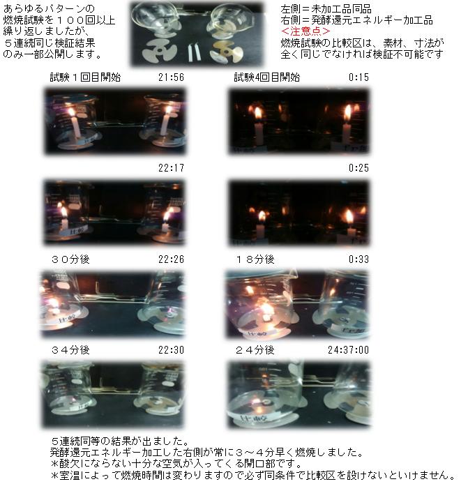 第2段 fr エネルギー加工金属と比較区でローソクの燃焼比較試験実施