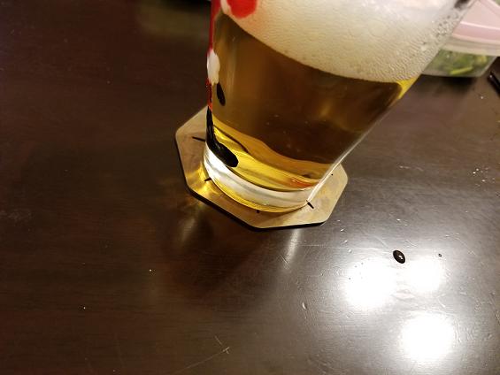 ビールの下にFR加工し特殊な形をしたものを1分間おきました。