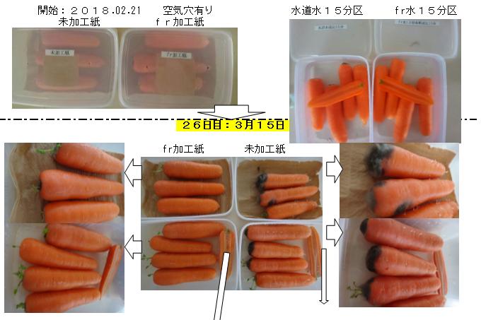 紙にfr加工をして人参の鮮度保持実験をしました。